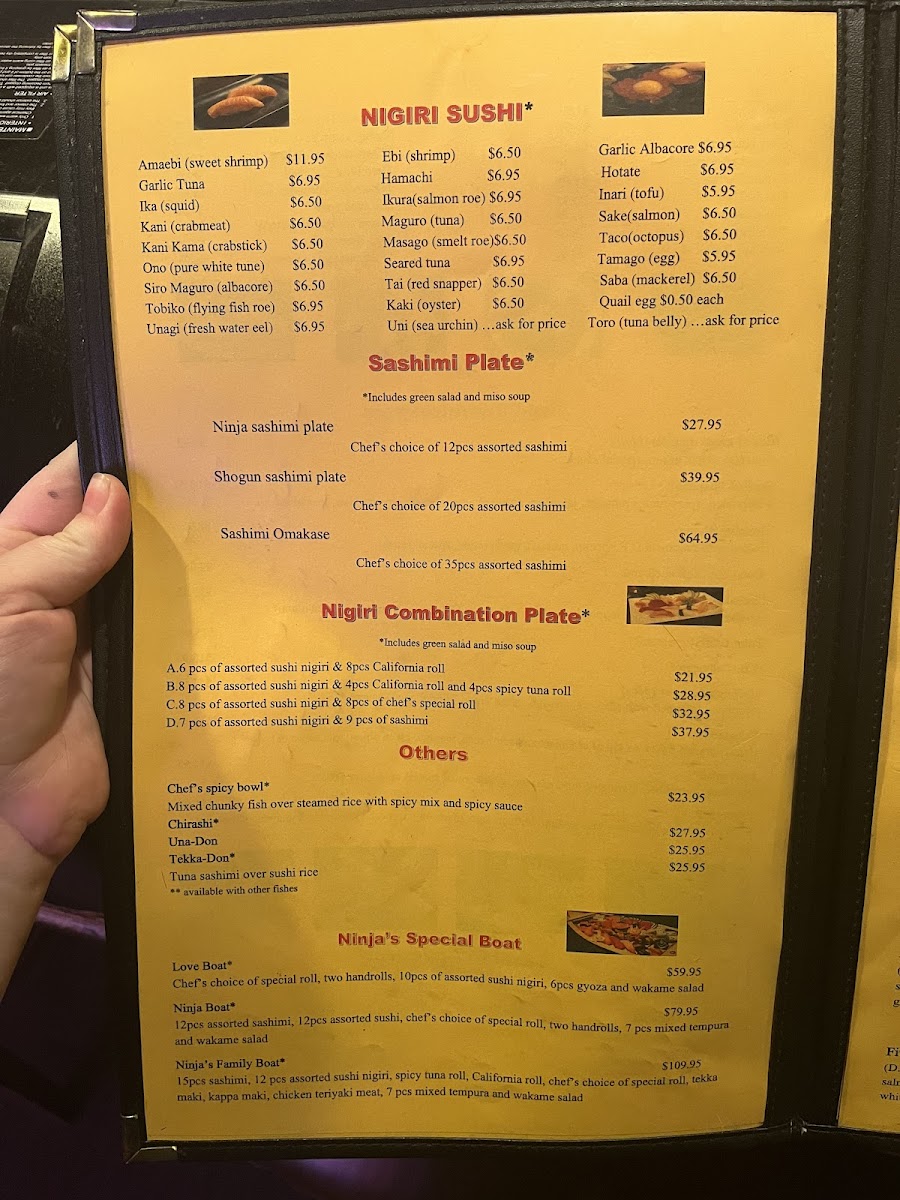 Ninja Sushi Menu